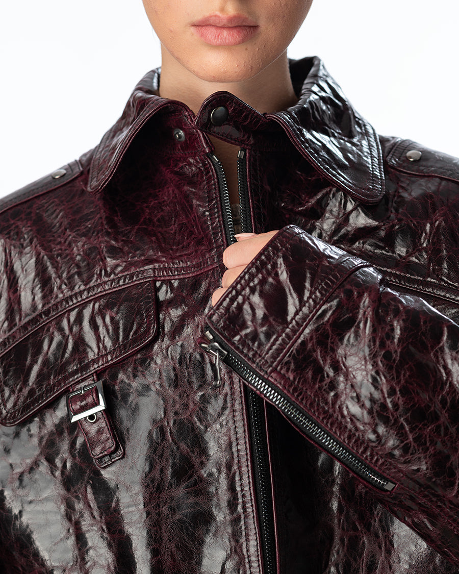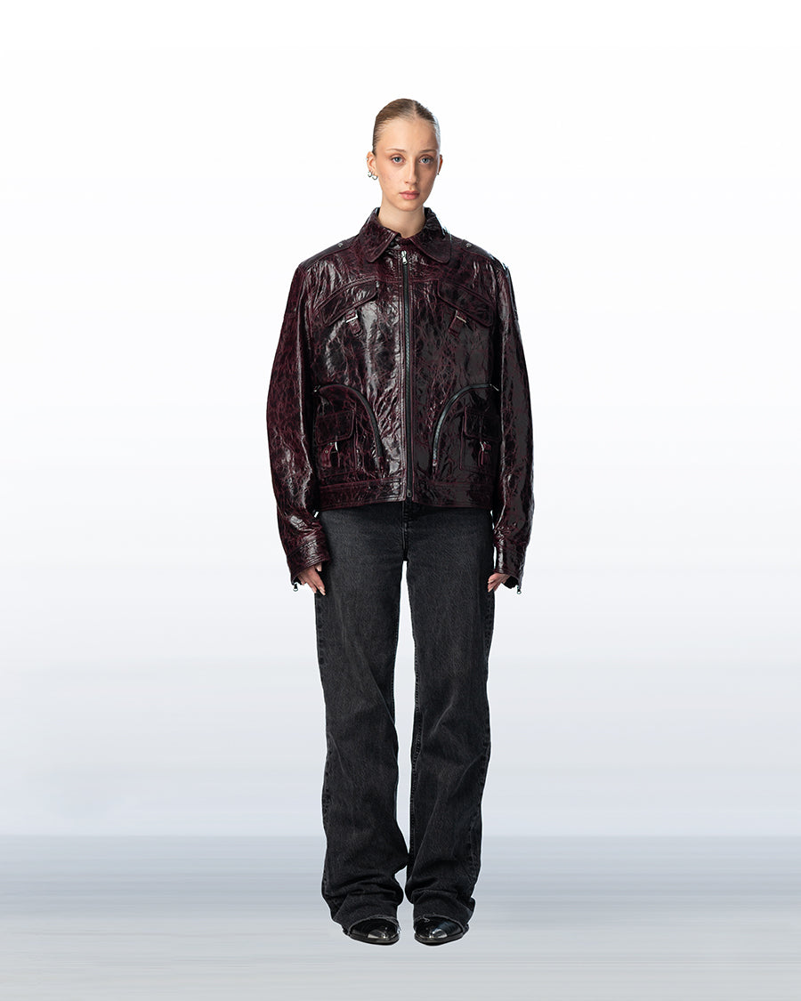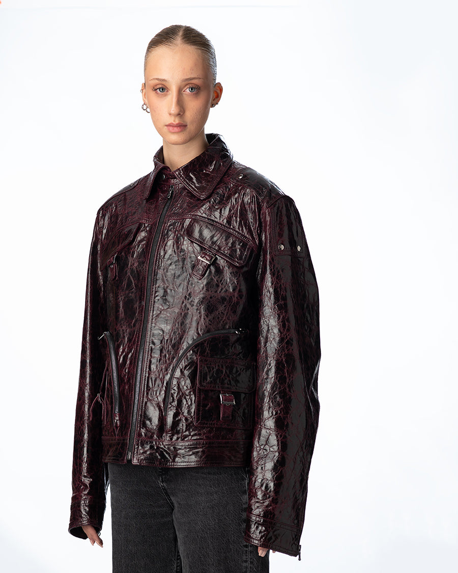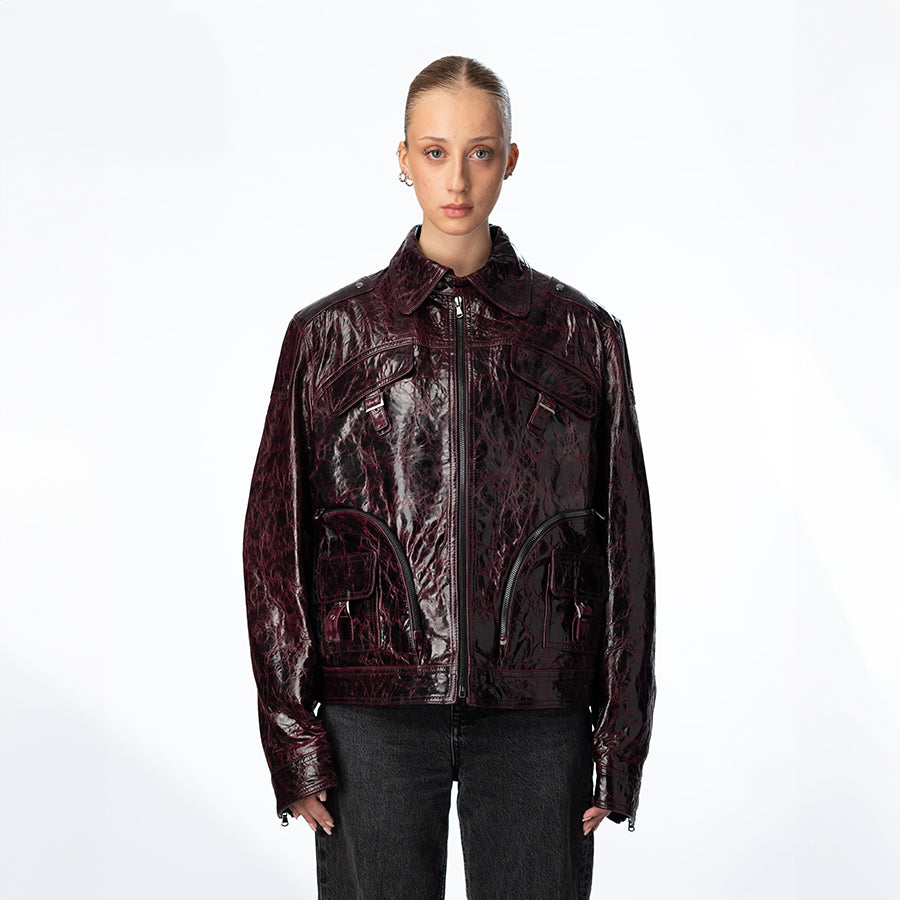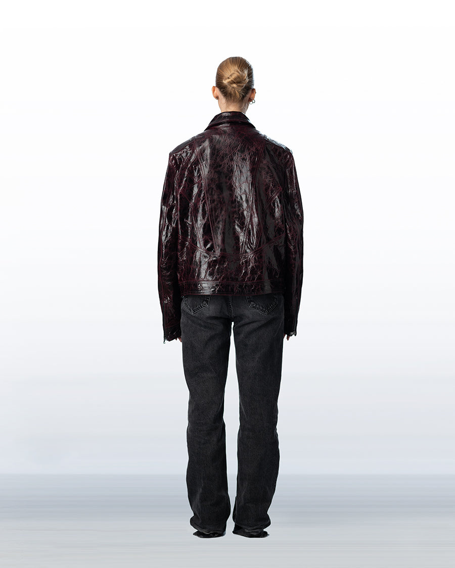 Circular zip leather jacket Unisex purple