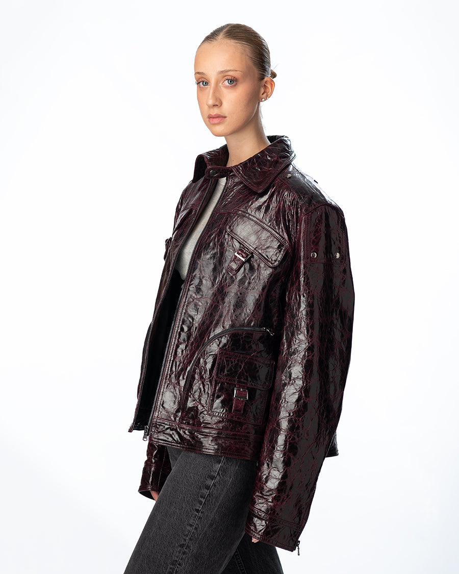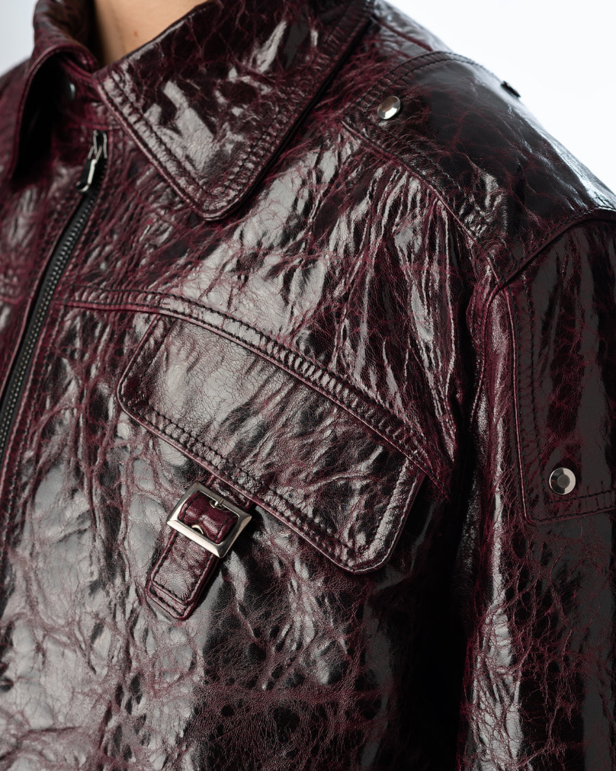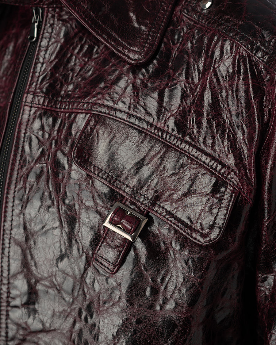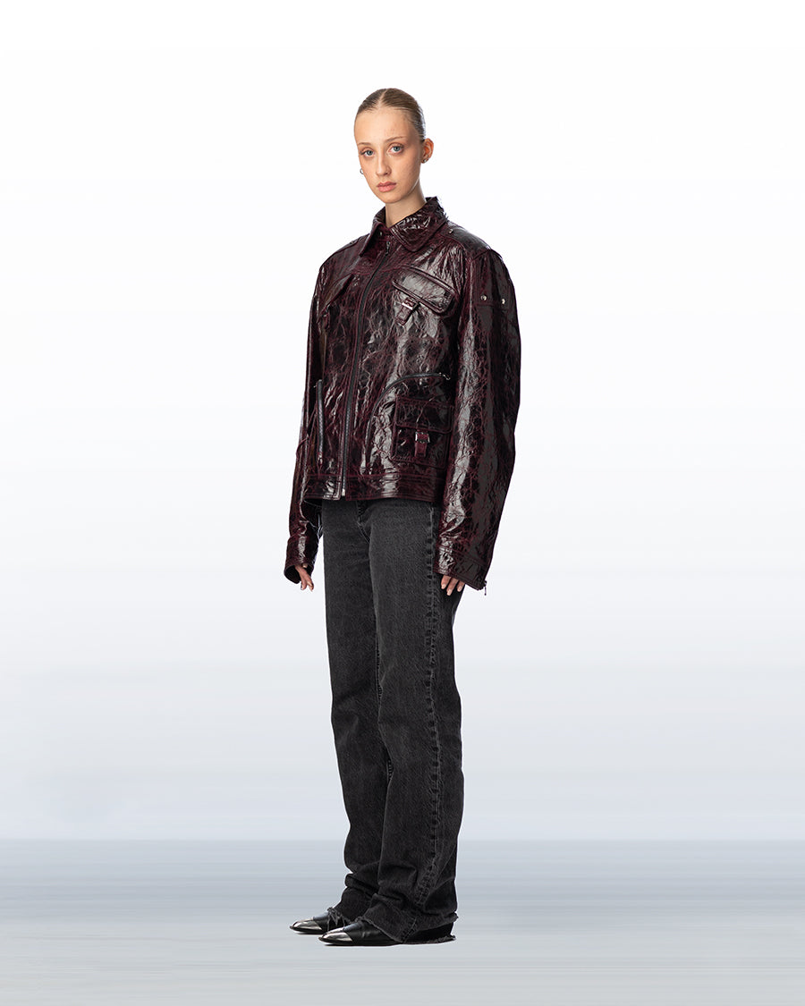 Circular zip leather jacket Unisex purple