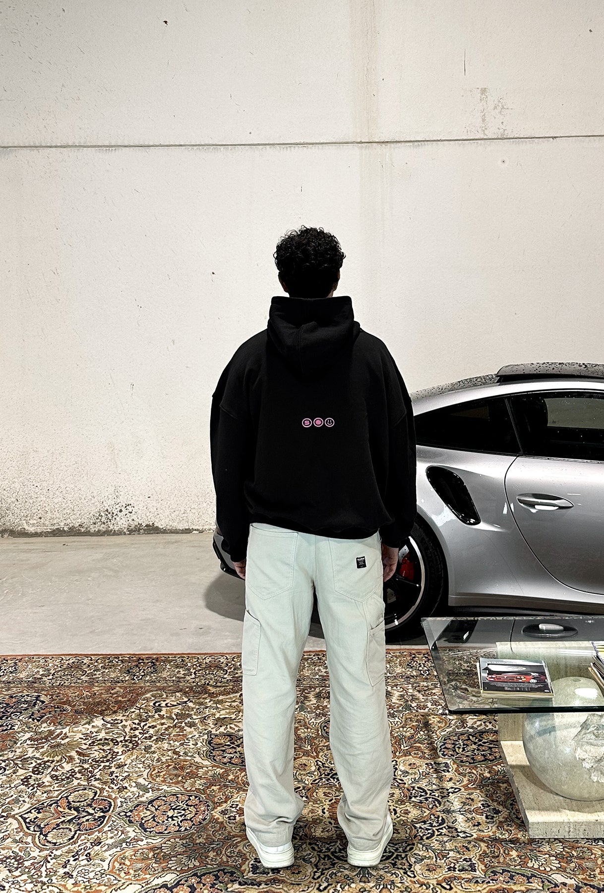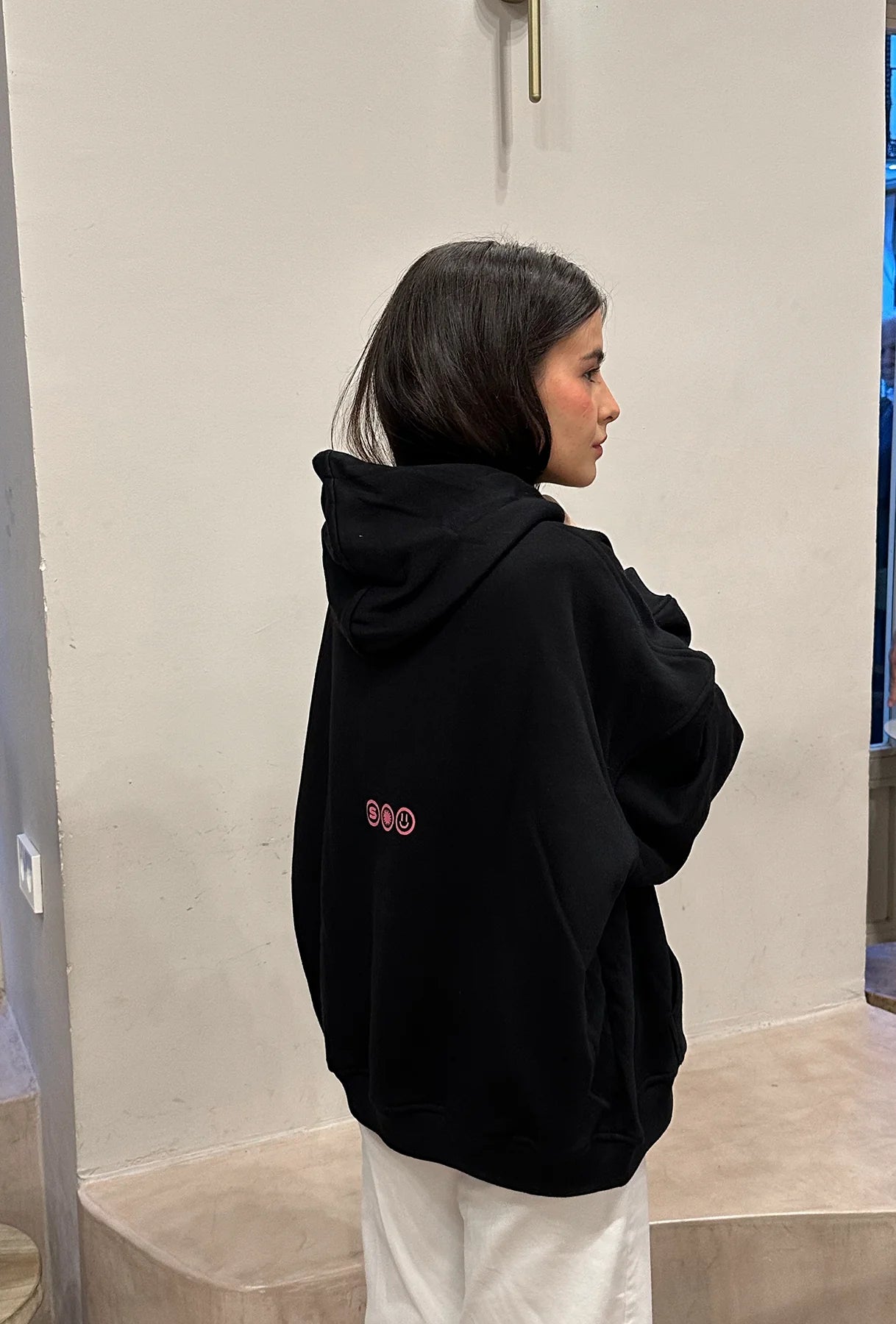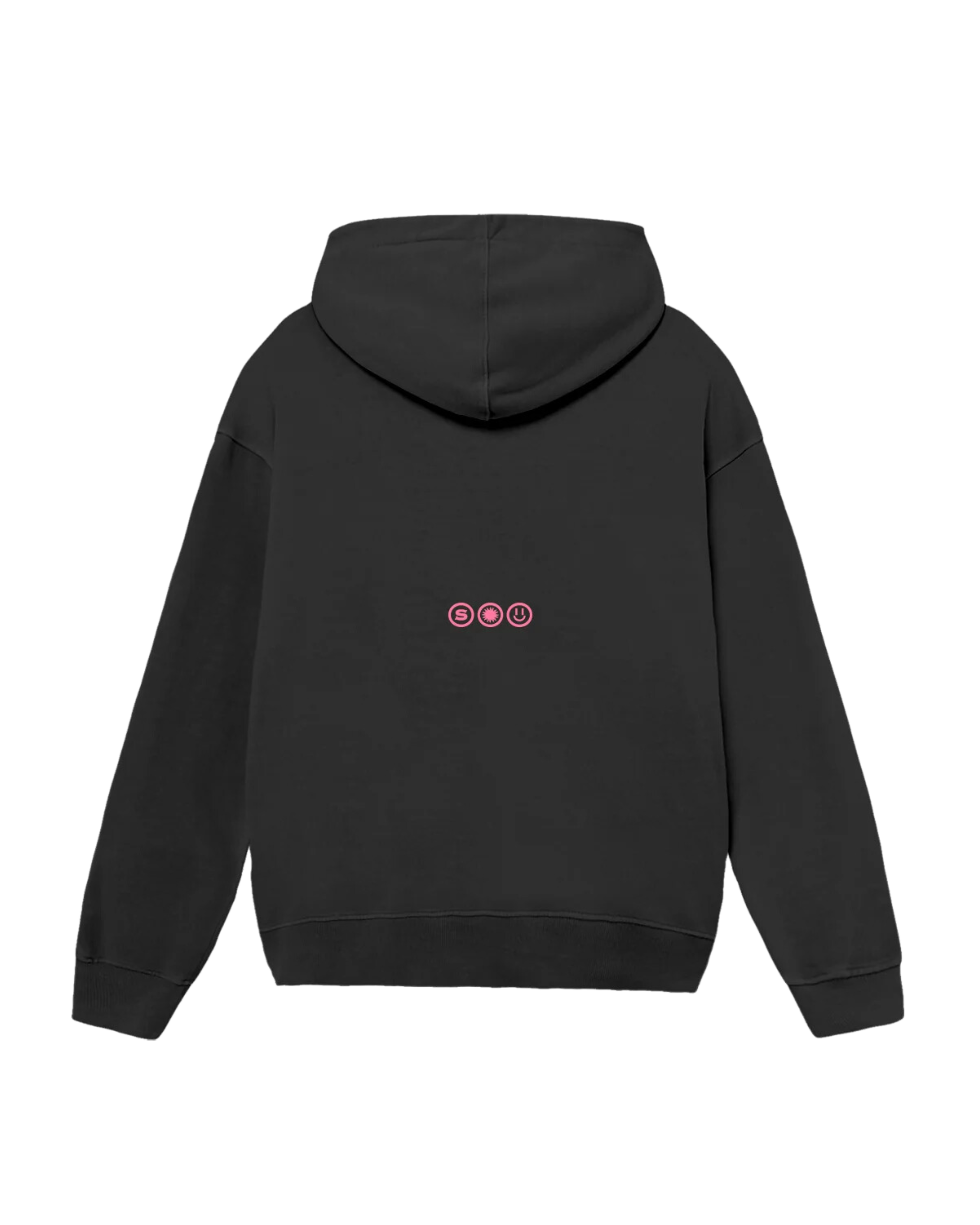 Sudadera COLLEGIATE - SUDADERA NEGRA CON CAPUCHA, estampada con un sutil color rosa.