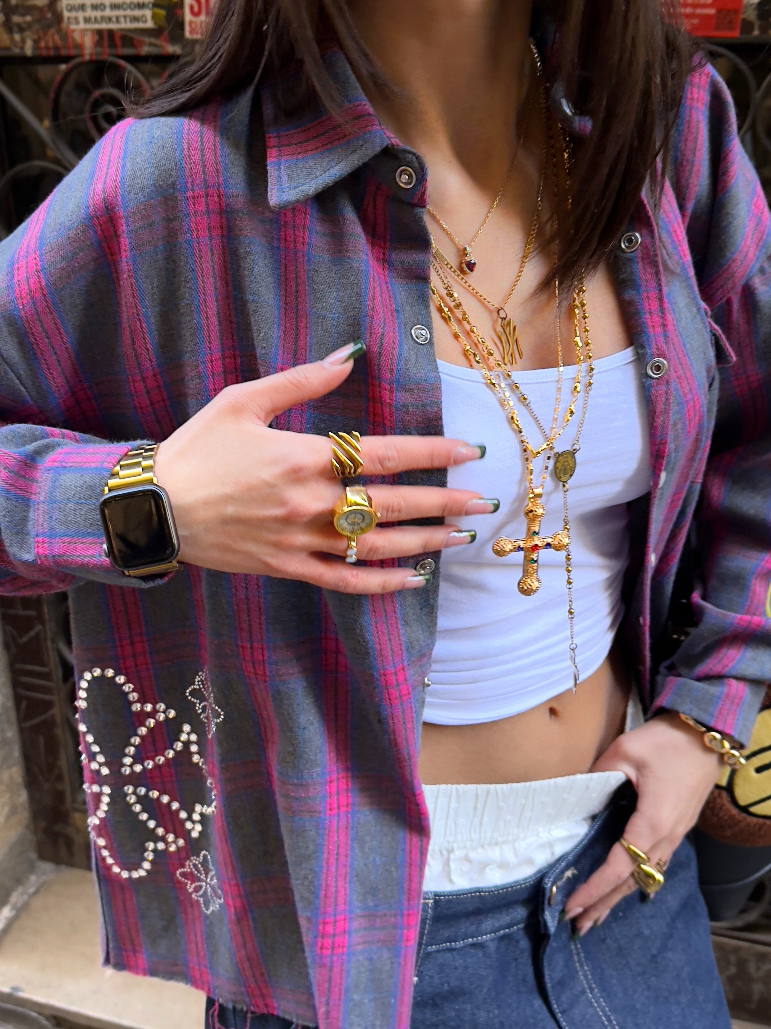 As a child, a simple plaid shirt made me feel different. It was the first piece of clothing that helped me start finding my own style, even when I didn’t quite know who I was yet. Today, at Seventeen G’s, I’m launching my own version of that piece — the one where it all began. A shirt featuring a rhinestone design on the side, the Seventeen G’s name stylizing the sleeve, and available in two colors. That’s why this Drop has become a small tribute to those first steps that brought me here.