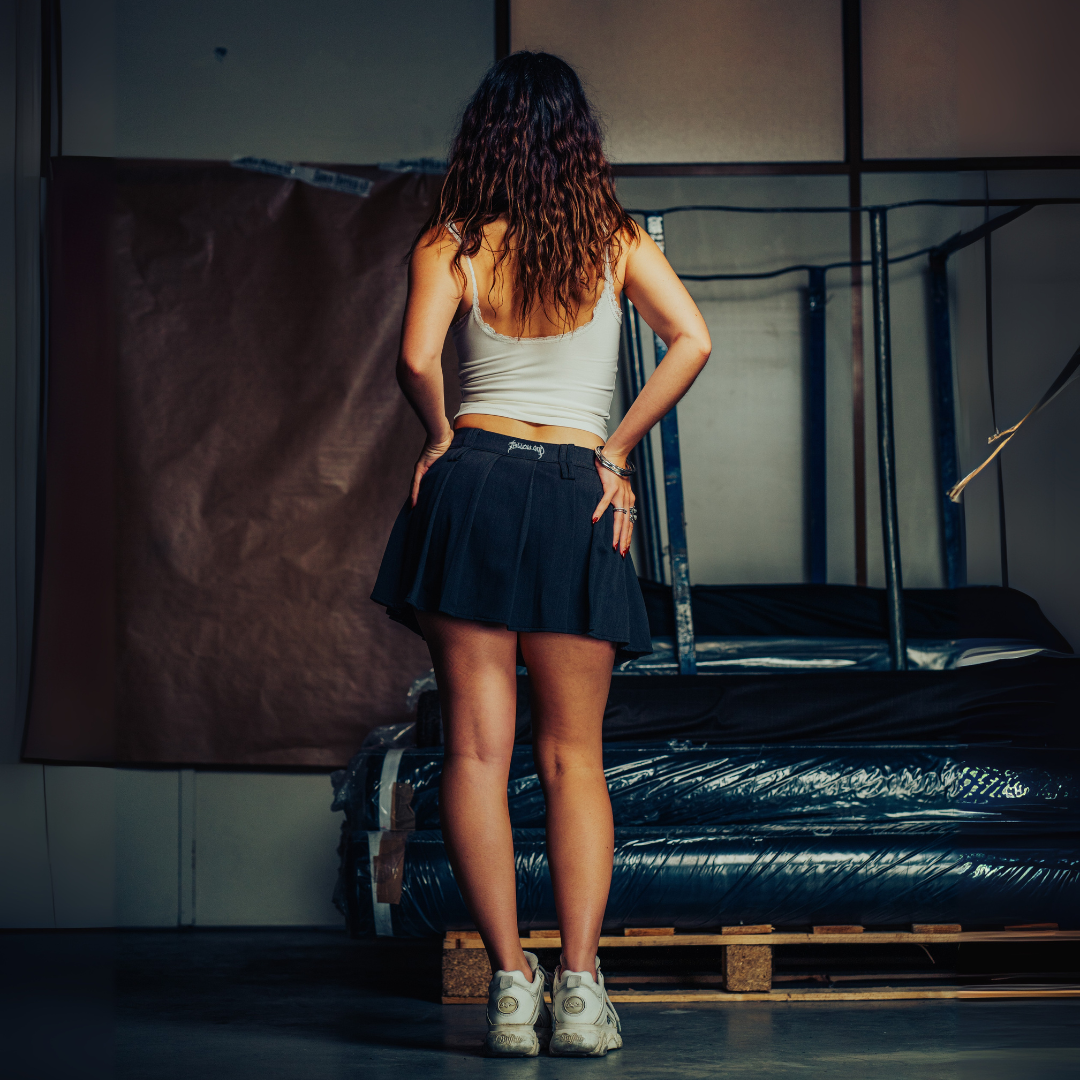 Lilith Mini Skirt – pleated grey mini with integrated shorts