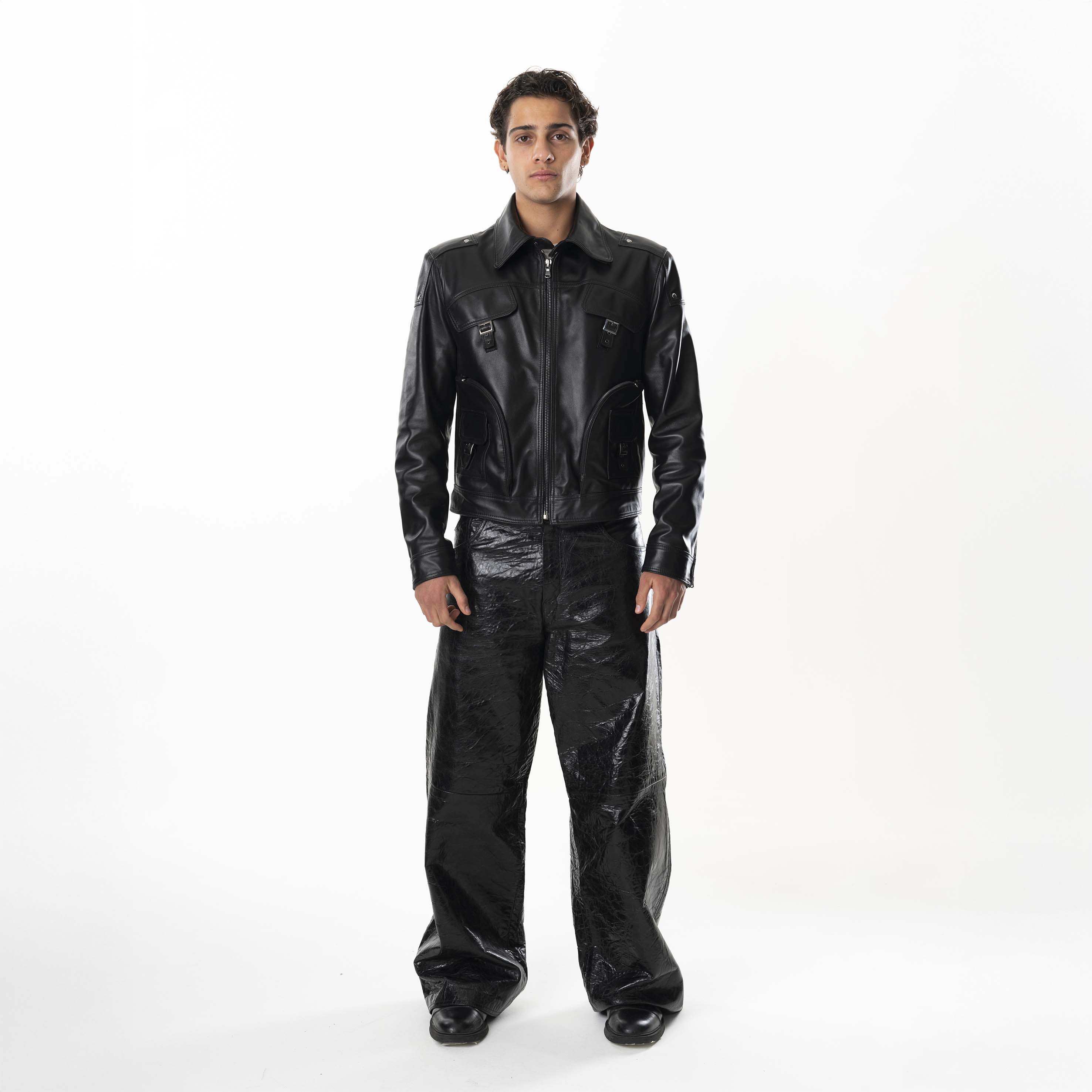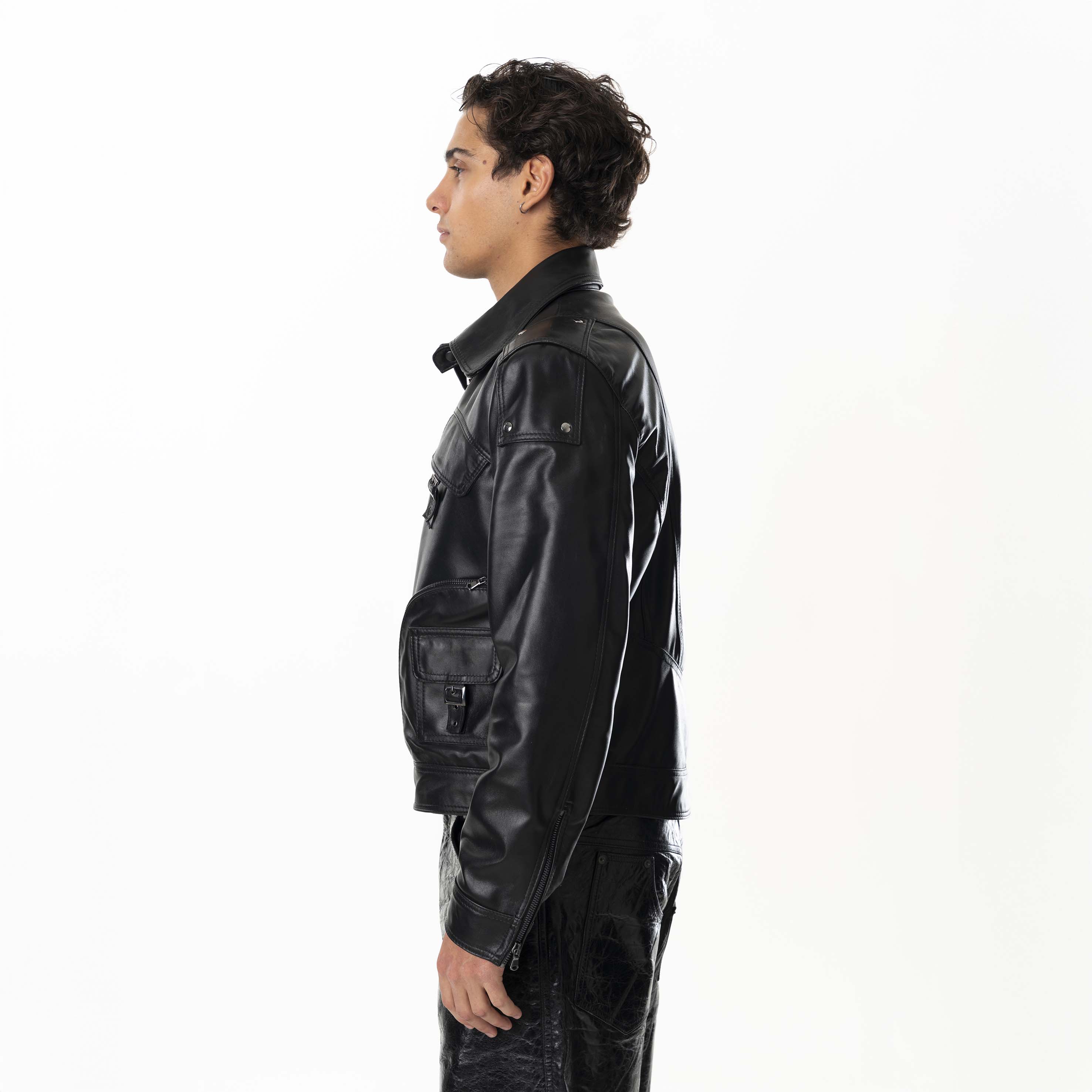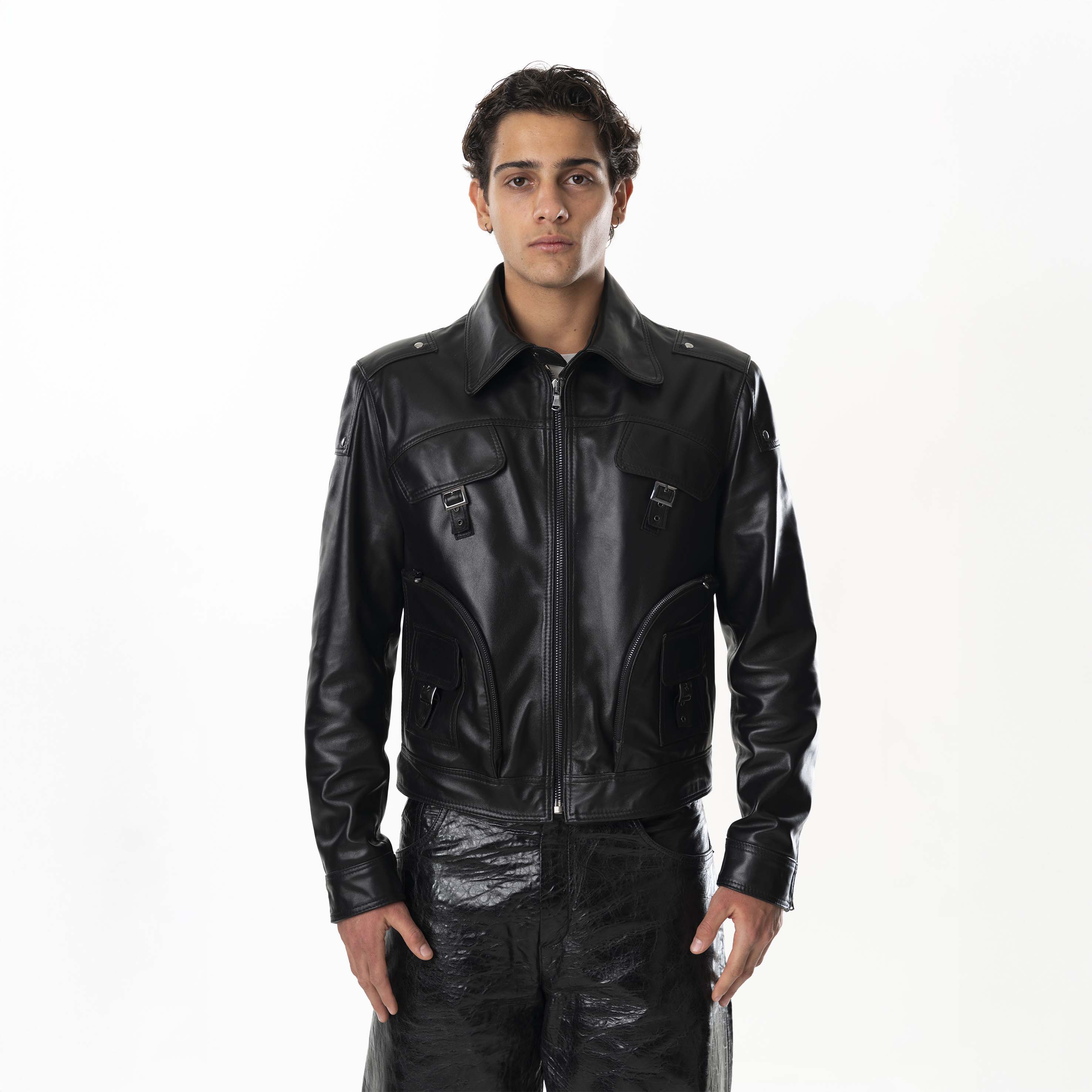 Multizip Leather Jacket Man - Black