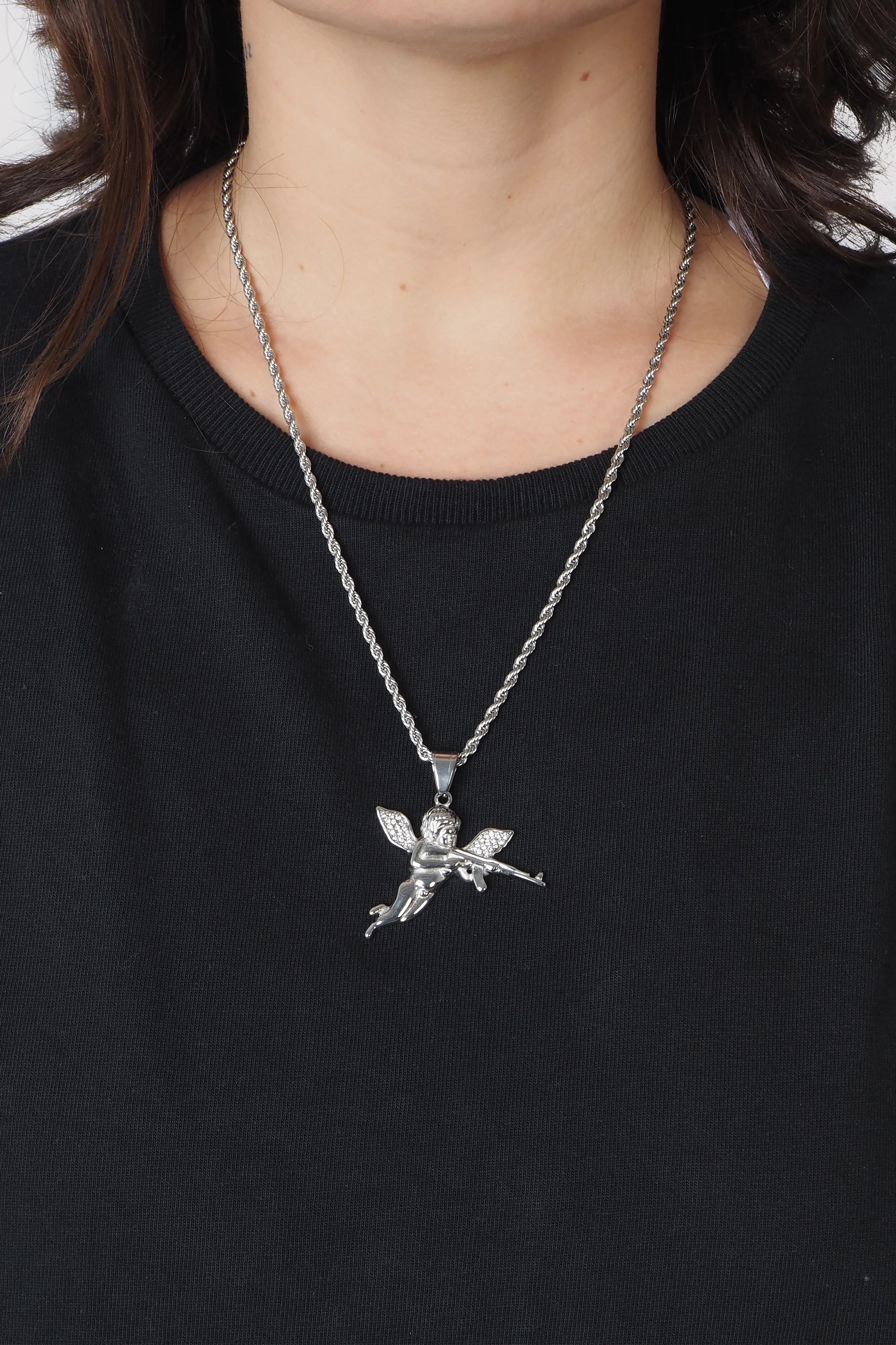 Carry love with you with this silver Cupid pendant, perfect for capturing eyes and hearts.