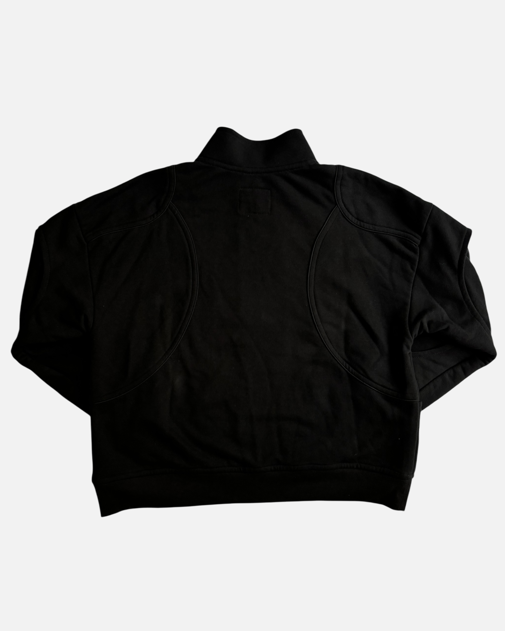 - Knitted jacket with a metal zipper, double front pockets, and curved cutouts. Oversized fit