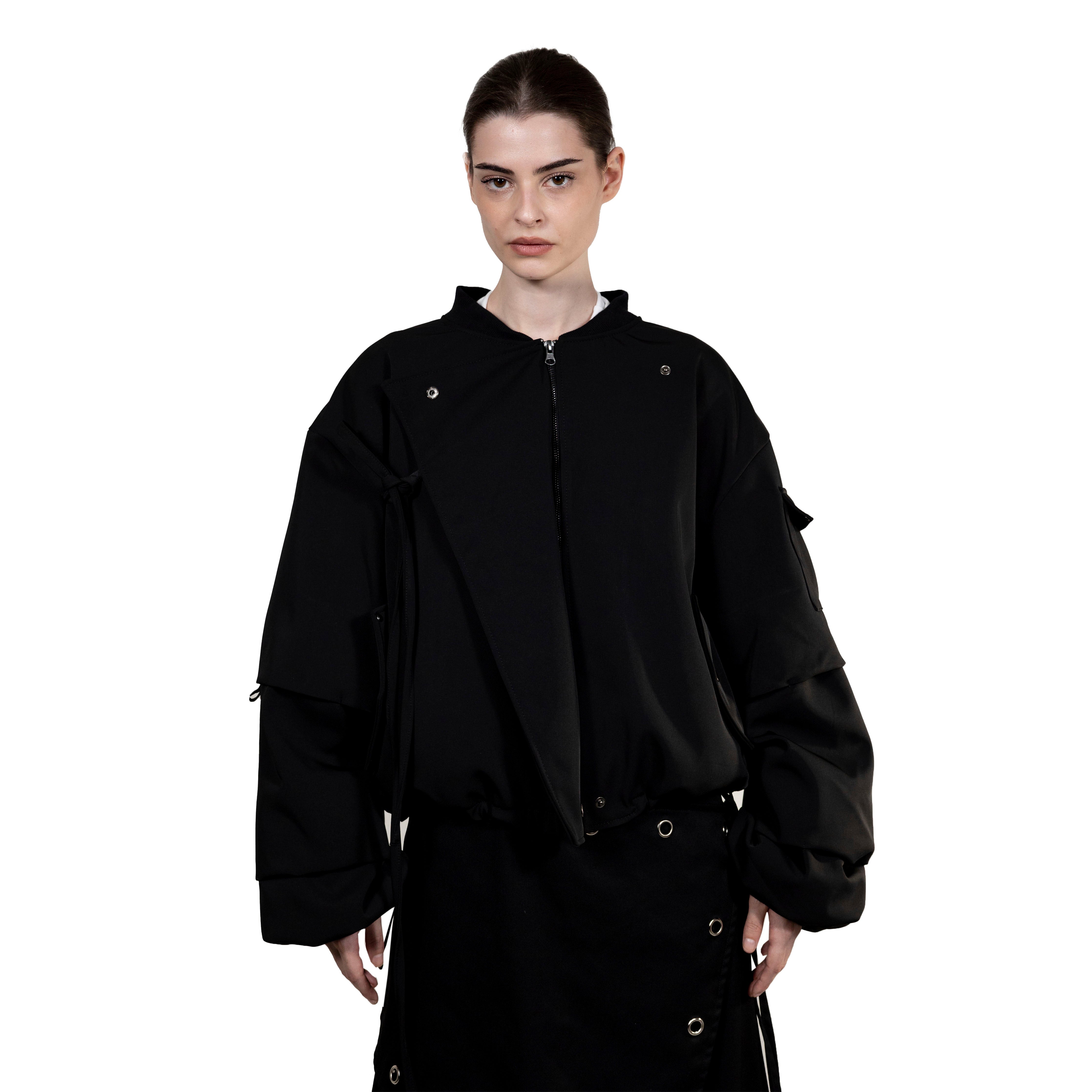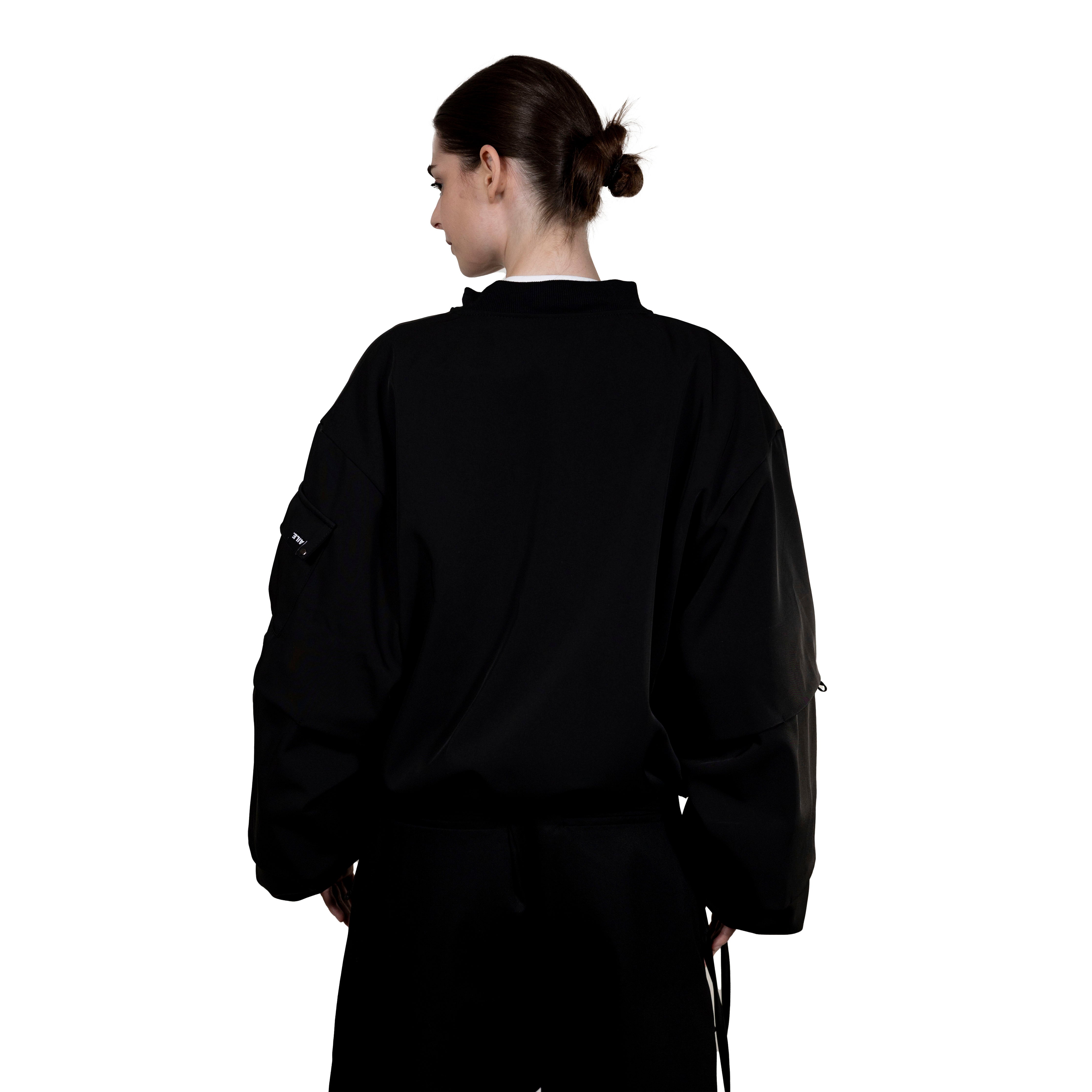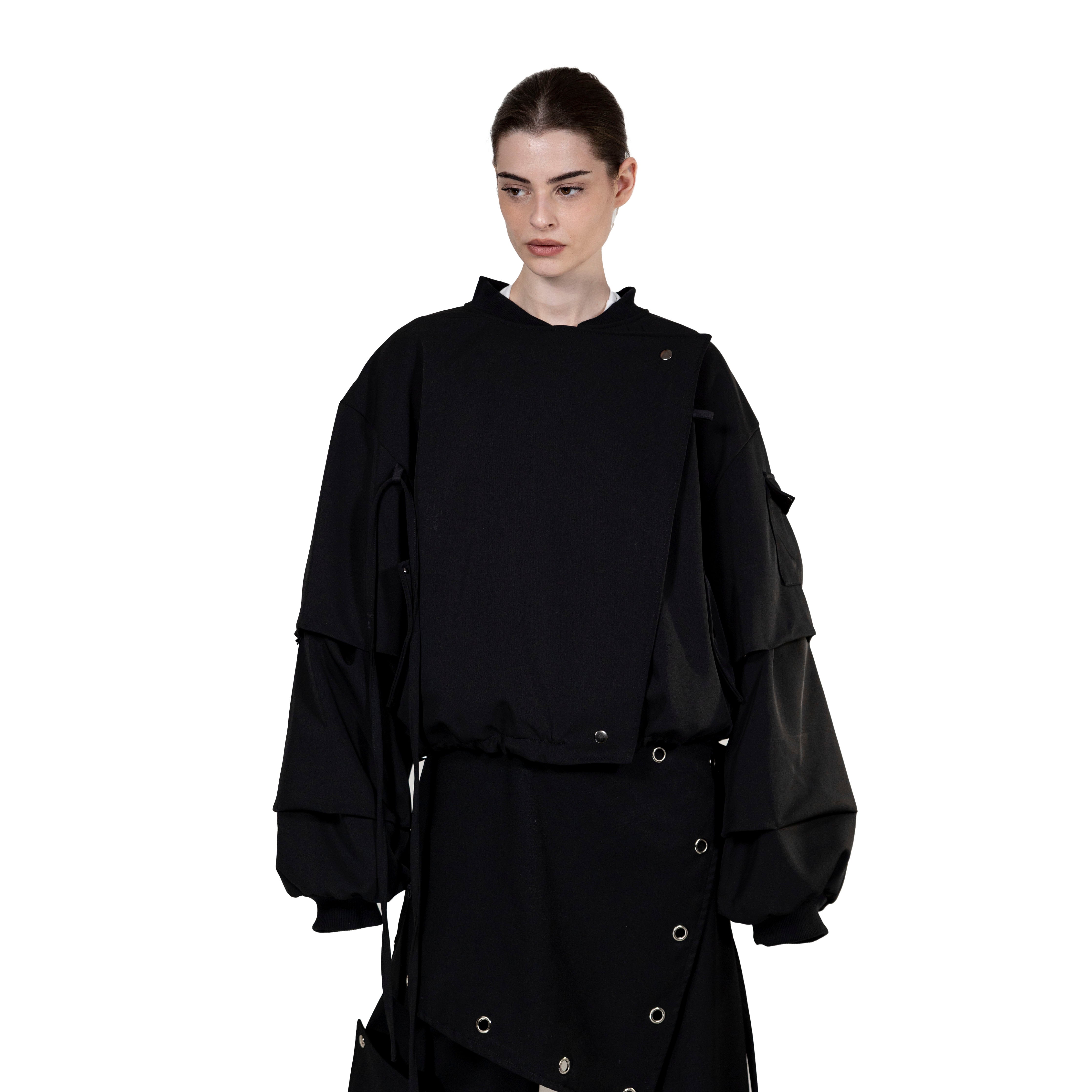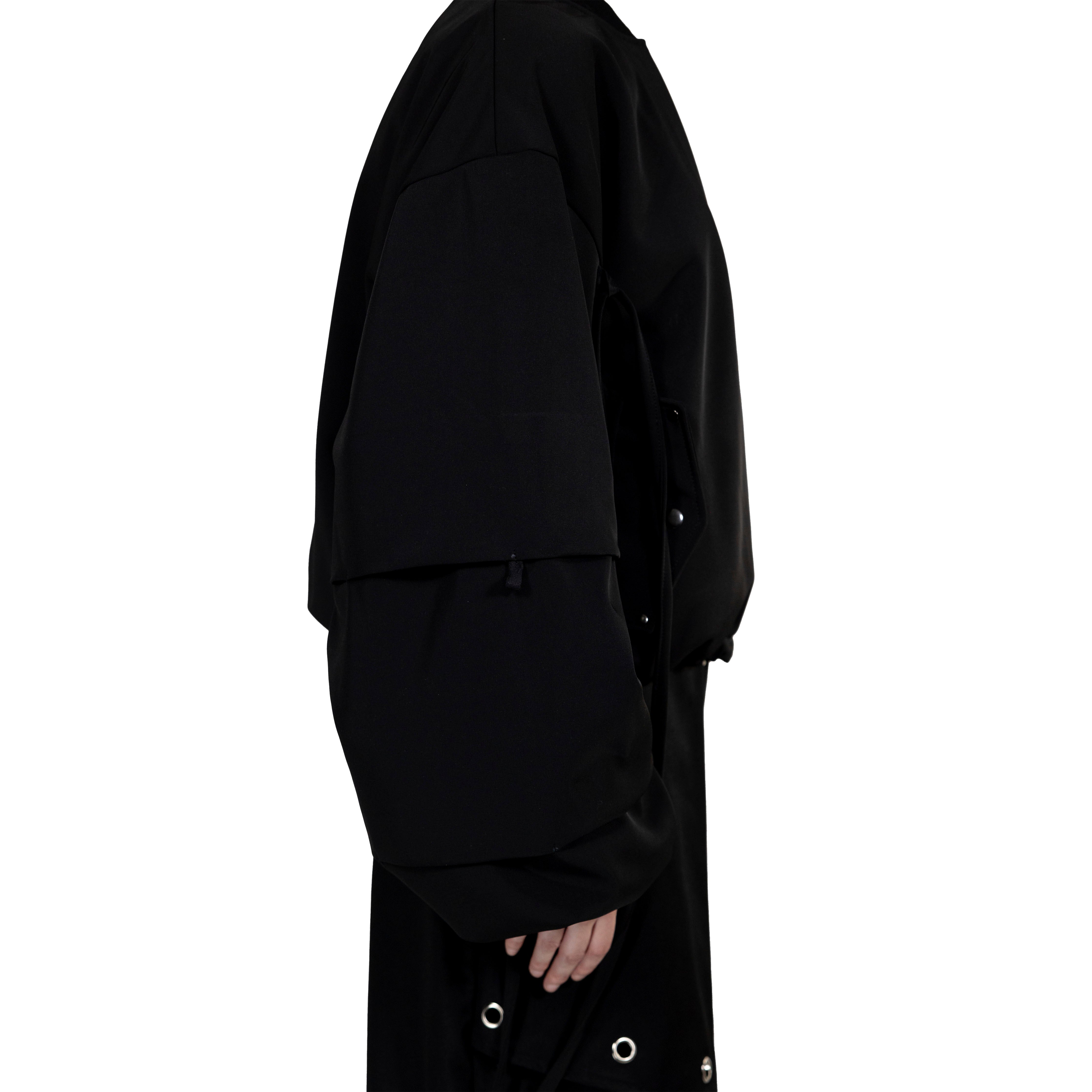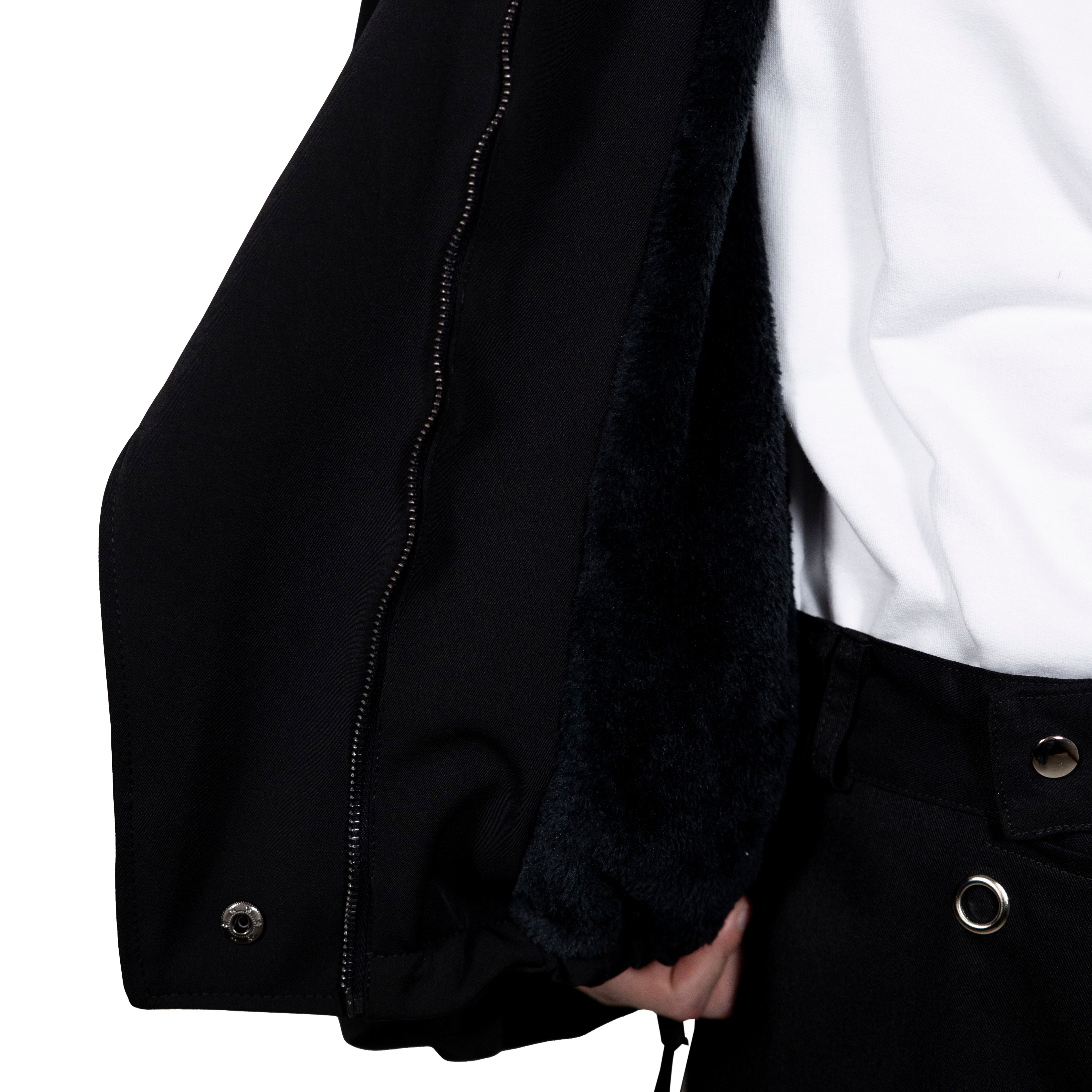 Double layered twill jacket in color black. 100% waterproof exterior and fur fleece interior. Folded sleeves and multi-position front.