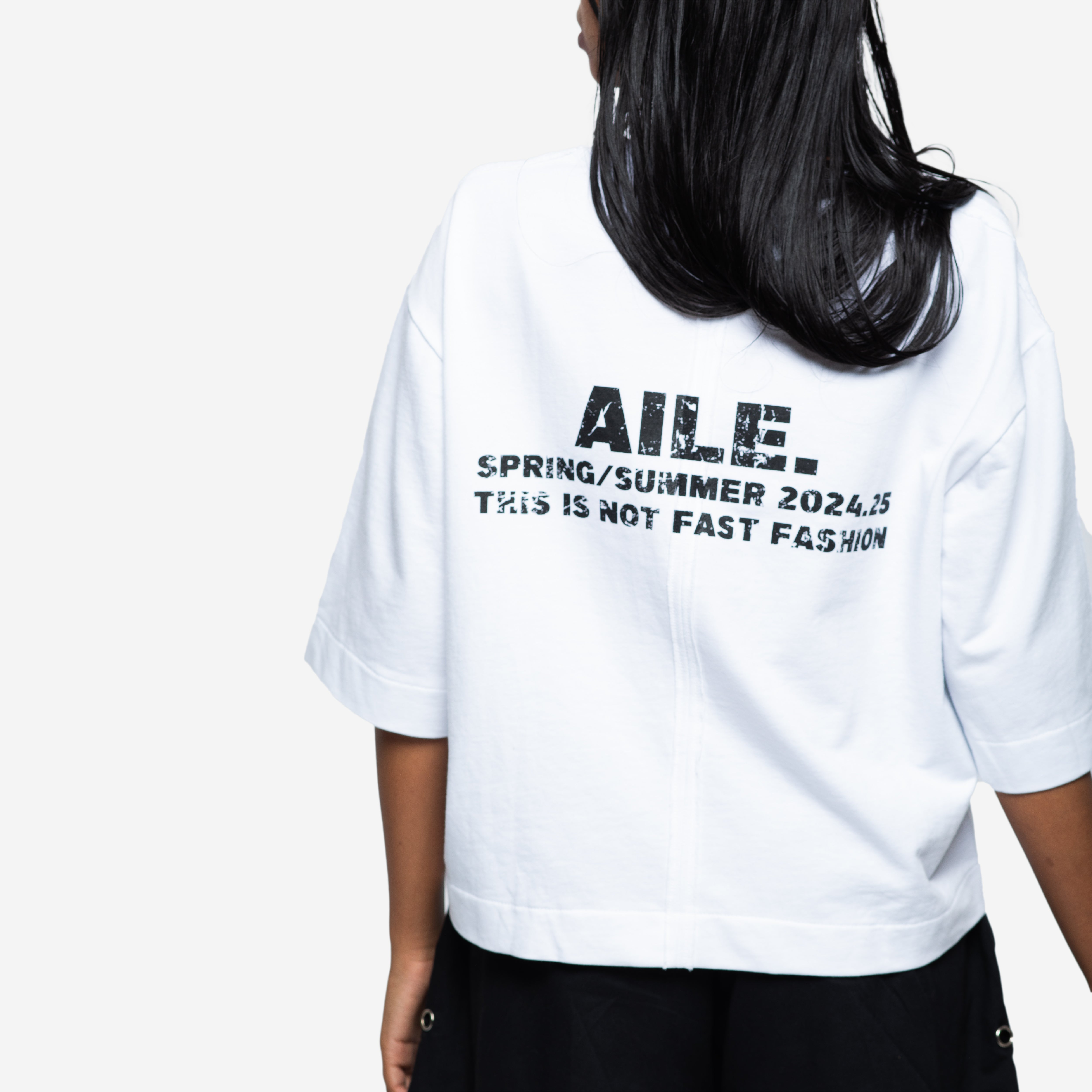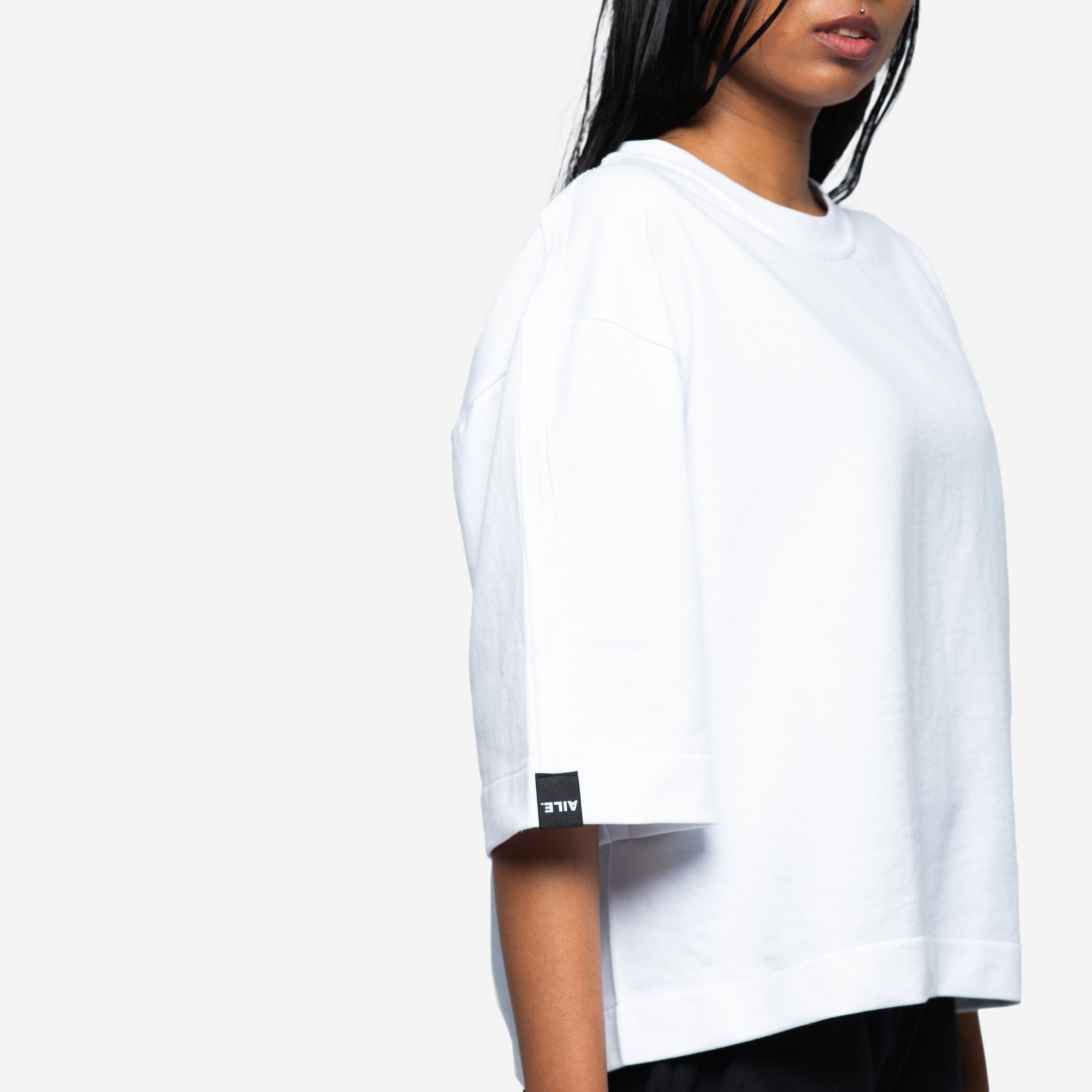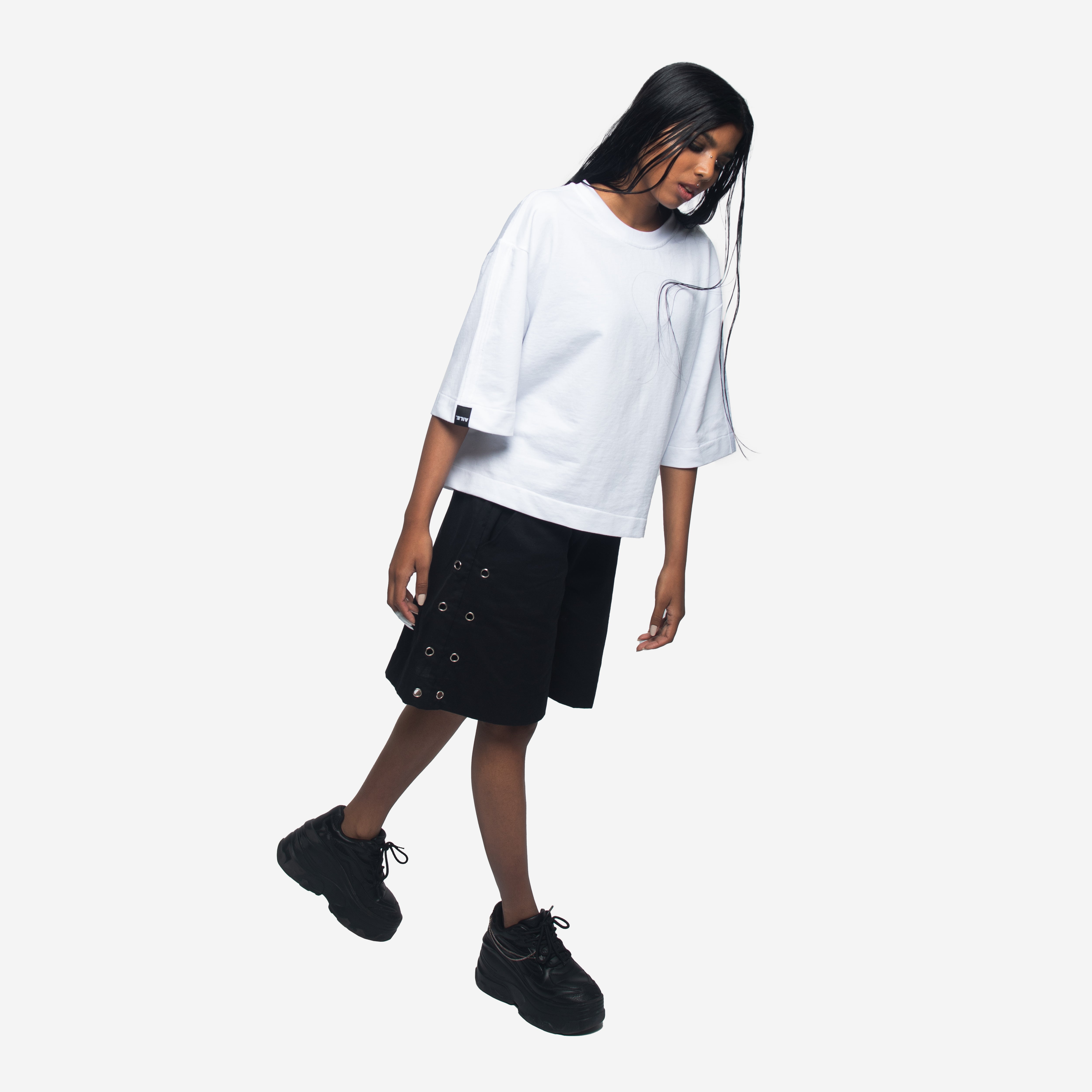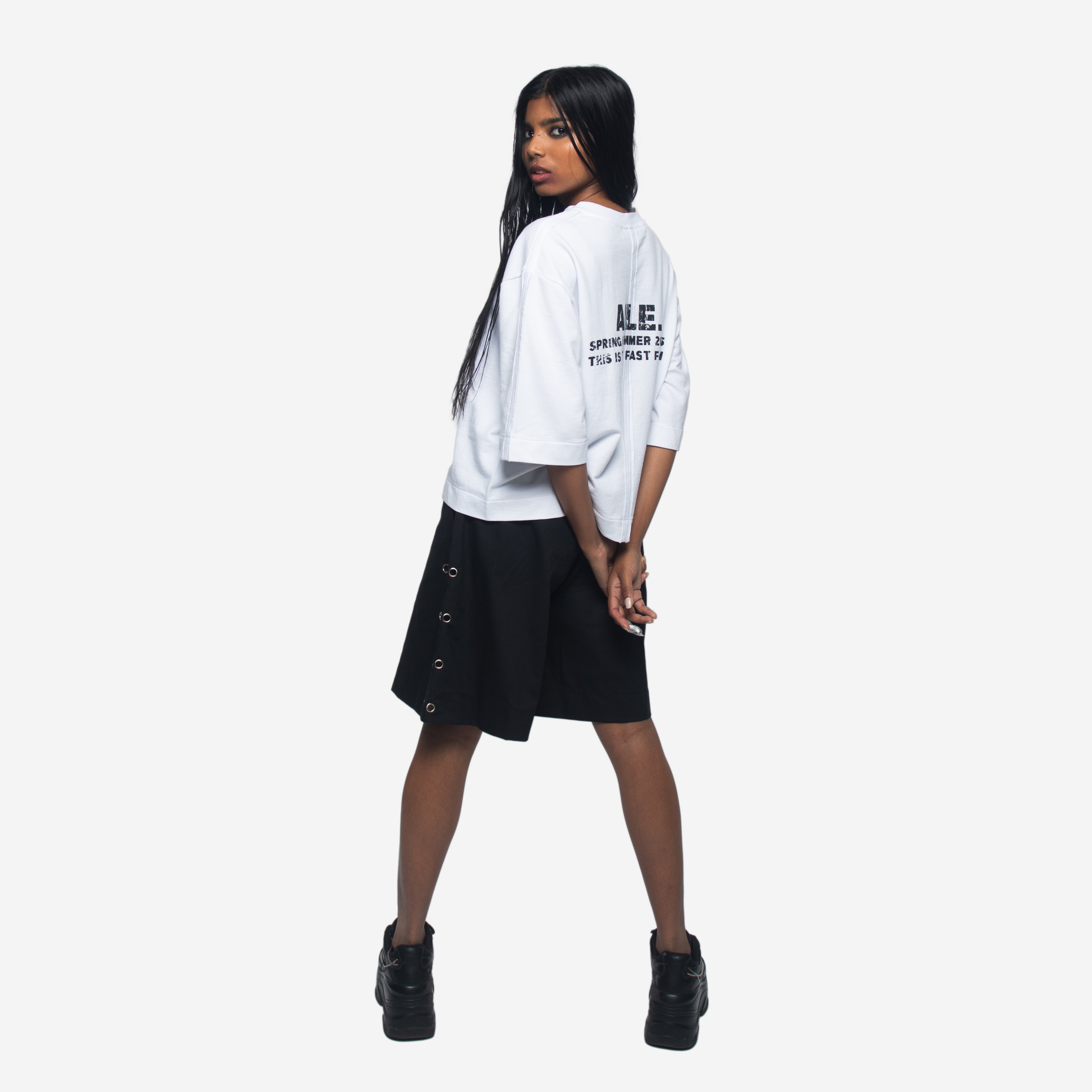 OVERSIZE CROPPED GRAPHIC T-SHIRT IN WHITE