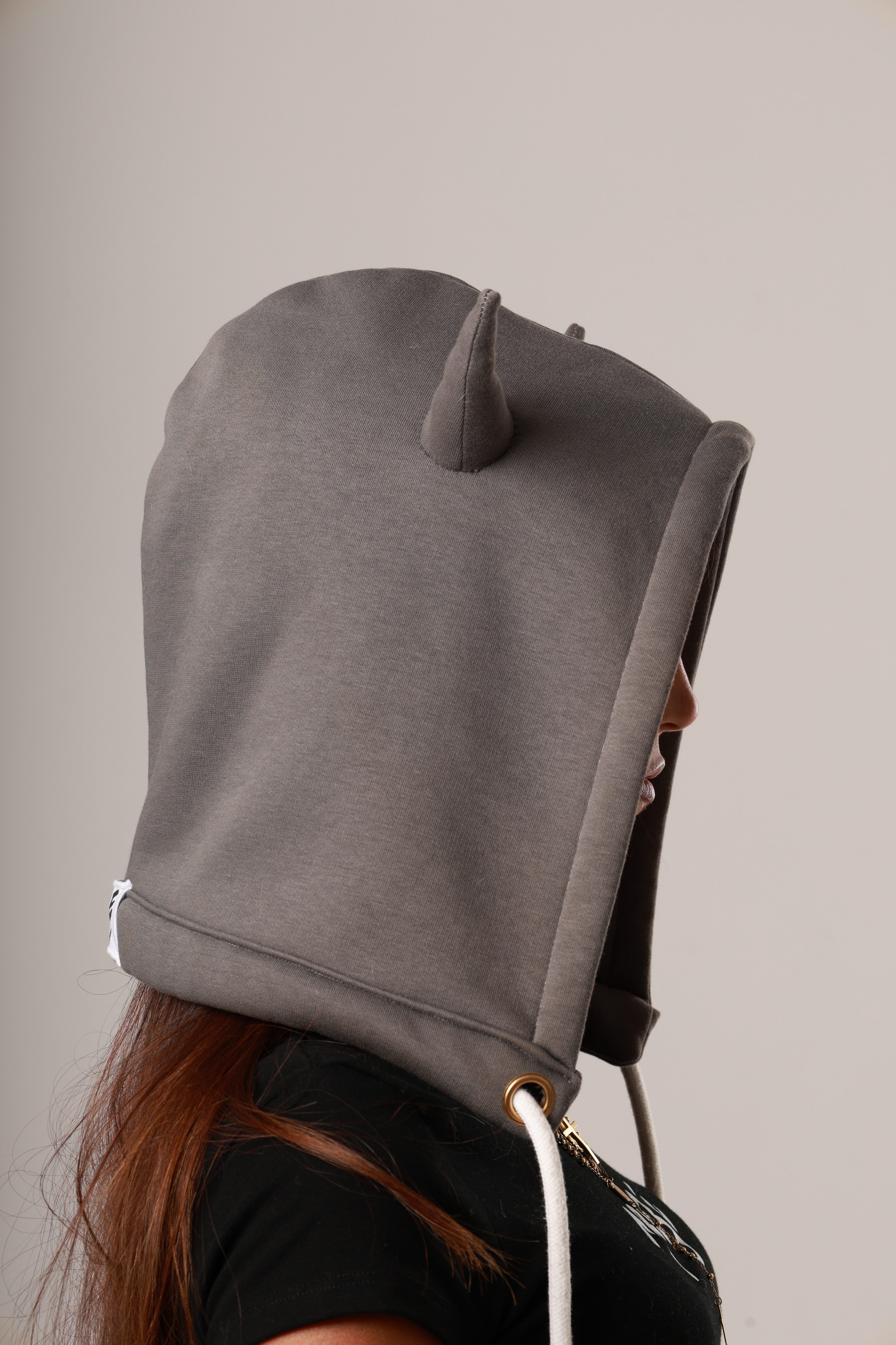 Handcrafted hood made using fabrics from local shops, carefully selected for their texture, quality, and style.